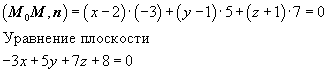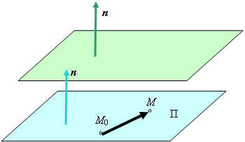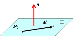 Вектор принадлежит плоскости П. Поскольку этот вектор перпендикулярен вектору нормали, то